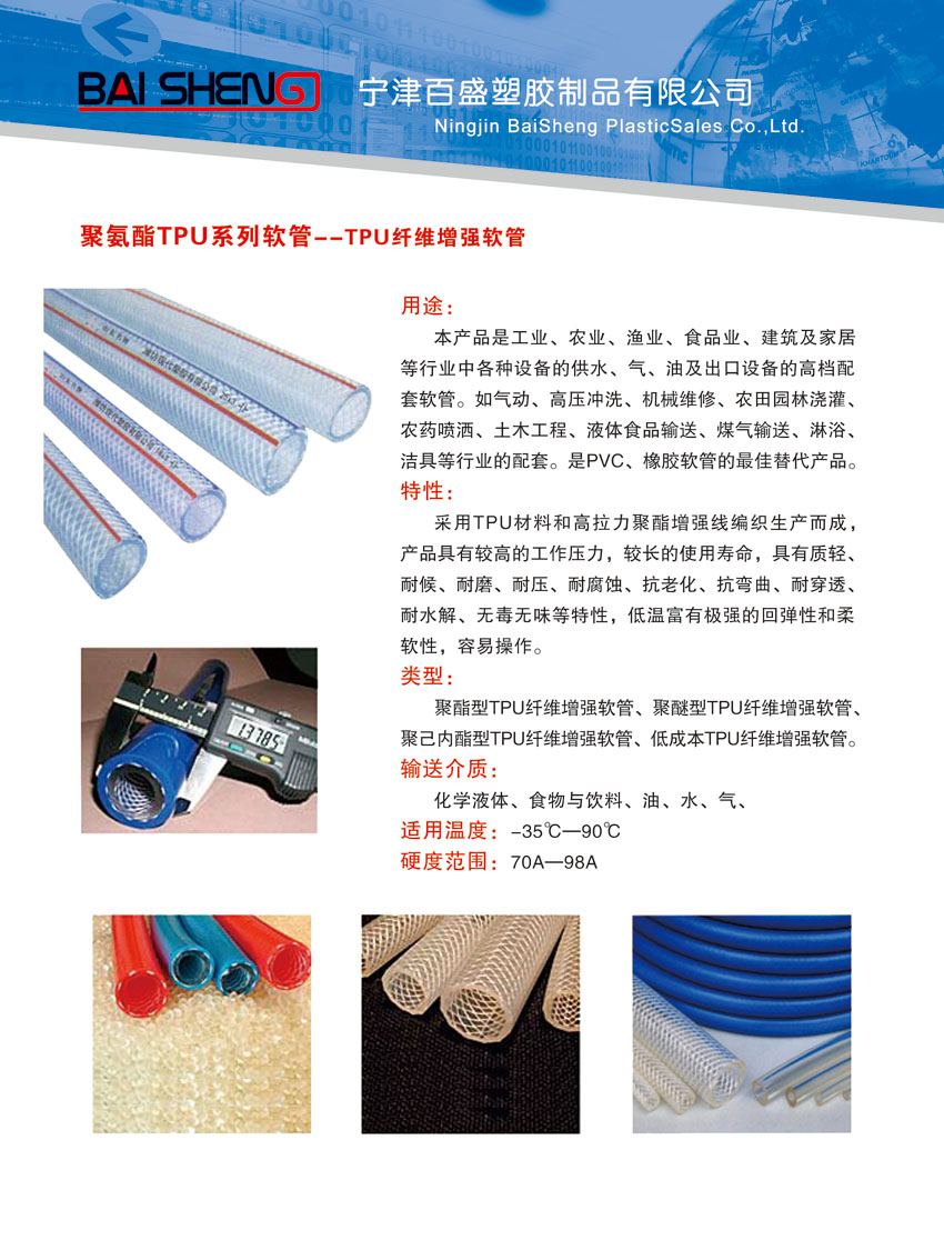 您的位置: 首頁 > 產(chǎn)品特性 > 聚氨酯TPU系列軟管--TPU纖維增強軟管